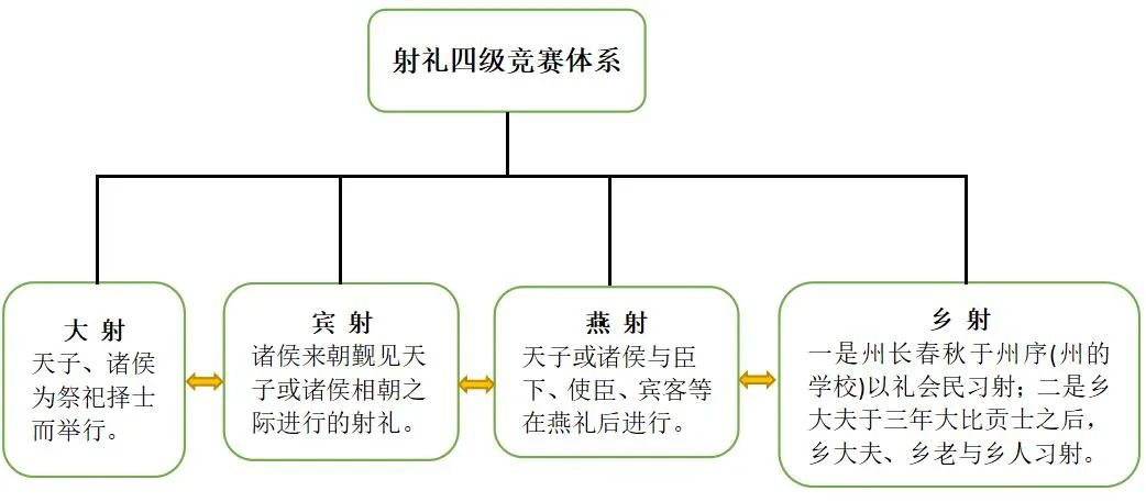 (一)射礼具有“大射、宾射、燕射、乡射”四个等级竞赛体系。